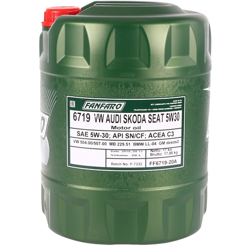 Fanfaro 6719 Longlife 5W-30 Fully Synthetic Oil Approved for VW Audi BMW Mercedes 20L
